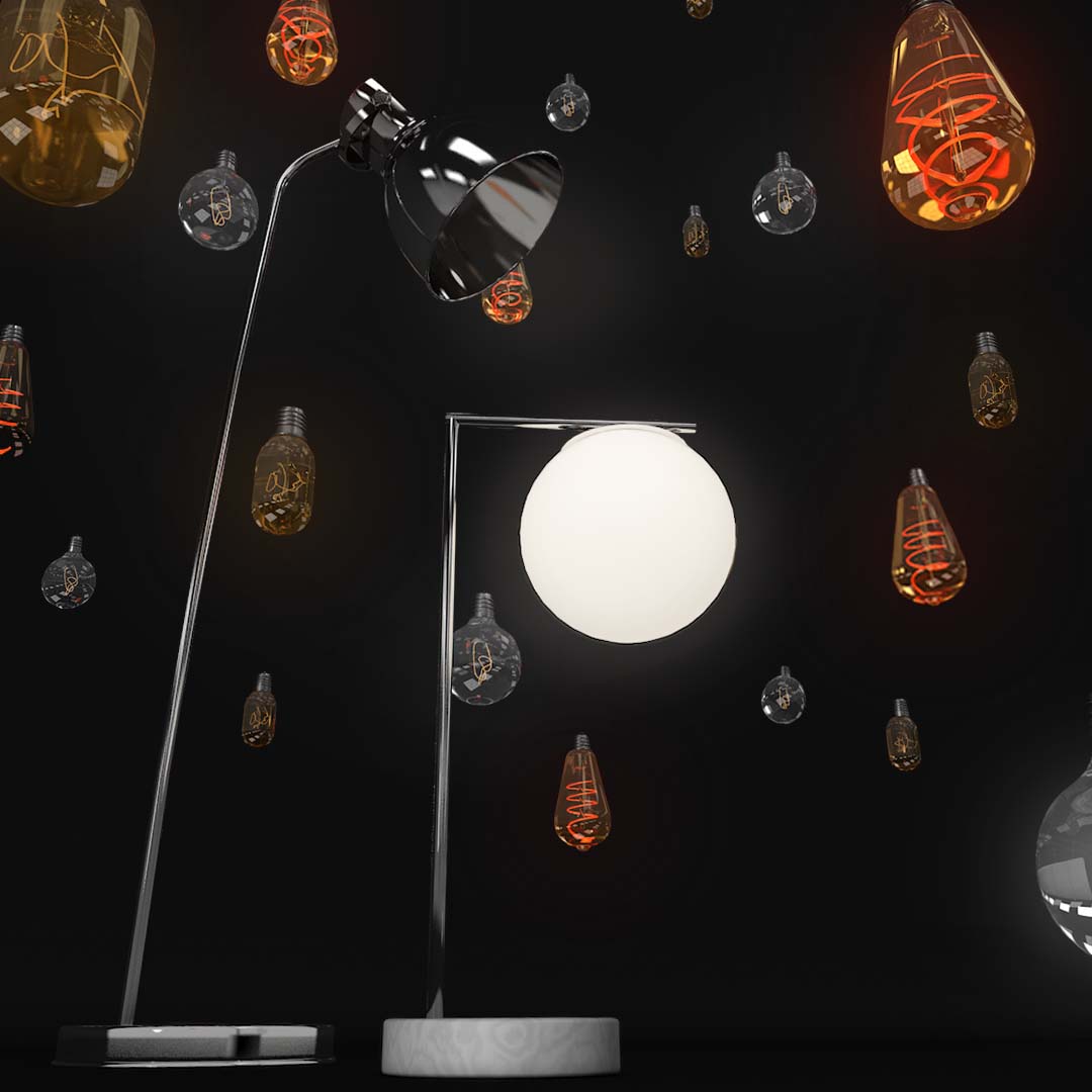 3D model replicas of found objects, imagined as a lighting brand print advertisement. Created in Cinema 4D.